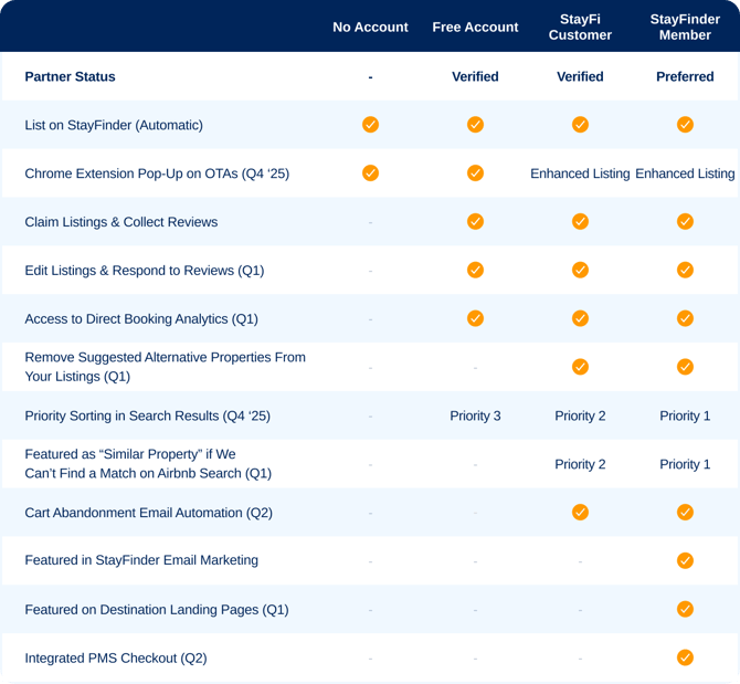 Once your listings are approved and you have opted in to StayFinder, you will become a Preferred Partner. You will automatically enjoy benefits such as a Preferred badge in your properties, highest priority sorting, and feature in StayFinder email campaigns.
